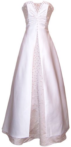 Beaded Strapless White Satin Dress Wedding Gown