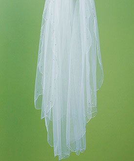 The 2-Tier Soft Tulle with Scattered Pearl Border and Cut Edge Veil is the perfect way to add the finishing touch to your wedding outfit. This design features scattered pearls throughout the veil with a cut edge.
