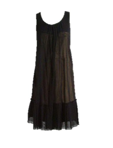 - Exquisite black cotton mesh nude illusion dress with trapeze silhouette and ruffle hem